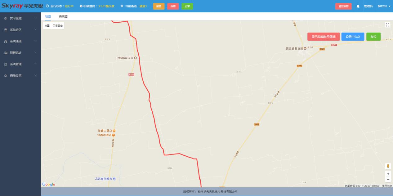 天然氣管線泄漏安全監(jiān)測系統(tǒng)采用目前先進的管道溫度系統(tǒng)監(jiān)測技術。僅用天然氣管線中的通訊光纜的一根光纖就可實現(xiàn)長達幾十公里的天然氣管道泄漏定位報警。通過基于通訊光纜的分布式光纖測溫技術,對天然氣管線進行在線溫度分布監(jiān)測,就能夠通過管道溫度異常點的探測,準確發(fā)現(xiàn)管道的泄漏點,并及時的進行報警和定位。如果天然氣管線發(fā)生泄漏,高壓氣體的體積膨脹將引起漏點附近溫度的下降,分布式光纖測溫系統(tǒng)同樣可通過溫度異常點的探測,發(fā)現(xiàn)并定位天然氣管線的泄漏點。通過對天然氣管線進行在線的分布式溫度監(jiān)測,并將系統(tǒng)設備接入管道監(jiān)測系統(tǒng)局域網(wǎng),通過網(wǎng)絡信號可將溫度信息上傳給中央服務器。可在整個天然氣管線線路發(fā)生管道泄漏以及事故初期階段,第一時間發(fā)現(xiàn)并報告預警點的具體位置、溫度變化、溫度下降走向等信息數(shù)據(jù),為天然氣管線管理部門及其它相關部門及時定位、分析可能發(fā)生的管道泄漏事故提供可靠堅實的信息獲取手段,為天然氣管線系統(tǒng)安全運行提供高效的安全保障。本系統(tǒng)具有本質防爆、抗強電磁干擾、電絕緣性好、防雷擊、高精度、重量輕、體積小等優(yōu)點,適合在易燃、易爆等高危環(huán)境應用。設備聯(lián)網(wǎng)后,通過載入百度地圖顯示光纜所在位置地圖,并設定中心點,選定當?shù)厮谖恢茫筛鶕?jù)管道的走向在地圖上標出光纜走向圖,當發(fā)生報警時,界面會出現(xiàn)一個彈窗,顯示報警地點,報警時間等。